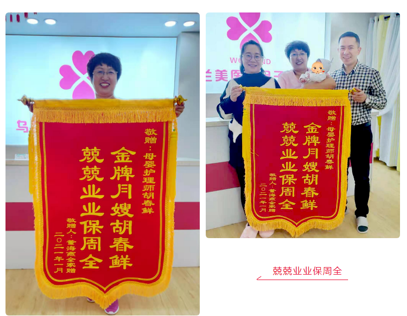 手捧錦旗的胡春鮮動(dòng)容的說(shuō):“這本就是我的分內(nèi)工作,是因?yàn)?lsquo;米勒媽媽’(寶媽)的活潑開(kāi)朗,讓我們相處的更加融洽,也讓我的工作更好的開(kāi)展!與此同時(shí)更要感謝烏蘭美醫(yī)養(yǎng)月子中心給我提供了事業(yè)發(fā)展的平臺(tái),感謝我的每一位老師對(duì)我的幫助和指導(dǎo),感謝大家給予我家一般的關(guān)懷和溫暖”。